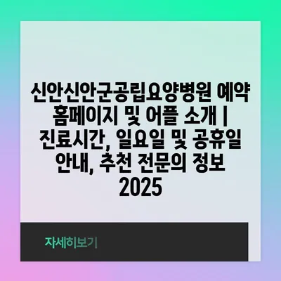 신안신안군공립요양병원 예약 홈페이지 및 어플 소개 | 진료시간, 일요일 및 공휴일 공지, 추천 전연락 정보 2025에 대해 알아보겠습니다.