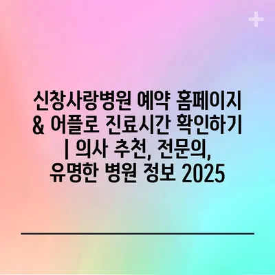 신창사랑병원 예약 홈페이지 & 어플로 진료시간 확인하기 | 의사 추천, 전연락, 유명한 병원 정보 2025에 대해 소개합니다.