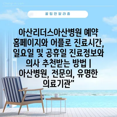 아산리더스아산병원 예약 홈페이지와 어플로 진료시간, 일요일 및 공휴일 진료정보와 의사 추천받는 방법