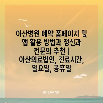 아산병원 예약 홈페이지 및 앱 활용 방법과 정신과 전연락 추천 | 아산의료법인, 진료시간, 일요일, 공휴일 에 대해 자주 묻는 질문 TOP 5