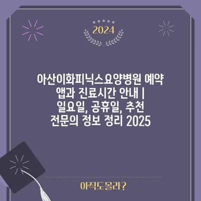 아산이화피닉스요양병원 예약 앱과 진료시간 공지 | 일요일, 공휴일, 추천 전연락 정보 정리 2025에 대해 자주 묻는 질문 TOP 5