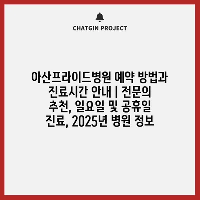 ✅ 아산프라이드병원의 예약 방법과 진료 시간을 자세히 알아보세요.