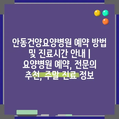 안동건양요양병원 예약 방법 및 진료시간 안내 | 요양병원 예약, 전문의 추천, 주말 진료 정보