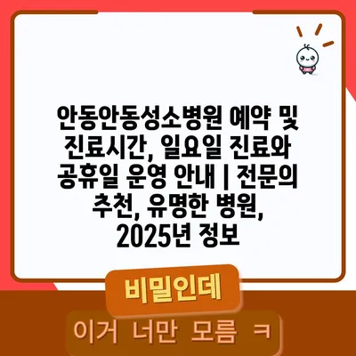 안동안동성소병원 예약 및 진료시간, 일요일 진료와 공휴일 운영 안내 | 전문의 추천, 유명한 병원, 2025년 정보