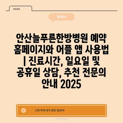 안산늘푸른한방병원 예약 홈페이지와 어플 앱 사용법 | 진료시간, 일요일 및 공휴일 상담, 추천 전연락 공지 2025에 대해 알아보겠습니다.