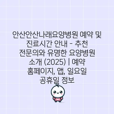 안산안산나래요양병원 예약 및 진료시간 공지 – 추천 전연락와 유명한 요양병원 소개 (2025) | 예약 홈페이지, 앱, 일요일 공휴일 정보에 대해 자주 묻는 질문 TOP 5