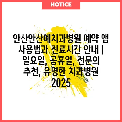 안산안산예치과병원 예약 앱 사용법과 진료시간 공지 | 일요일, 공휴일, 전연락 추천, 유명한 치과병원 2025에 대해 알아보겠습니다.