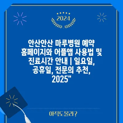 안산안산 마루병원 예약 홈페이지와 어플앱 사용법 및 진료시간 공지 | 일요일, 공휴일, 전연락 추천, 2025