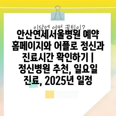 안산연세서울병원 예약 홈페이지와 어플로 정신과 진료시간 확인하기 | 정신병원 추천, 일요일 진료, 2025년 일정