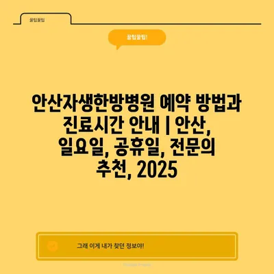 안산자생한방병원 예약 방법과 진료시간 공지 | 안산, 일요일, 공휴일, 전연락 추천, 2025 에 대해 자주 묻는 질문 TOP 5
