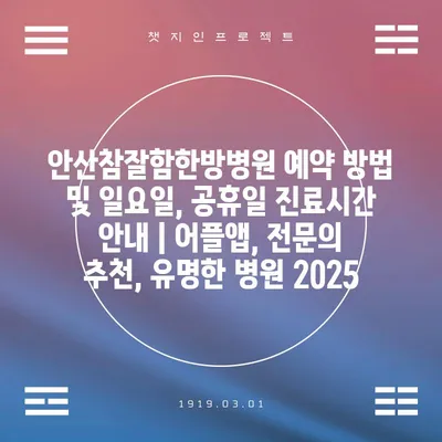 안산참잘함한방병원 예약 방법 및 일요일, 공휴일 진료시간 공지 | 어플앱, 전연락 추천, 유명한 병원 2025에 대해 알아보겠습니다.