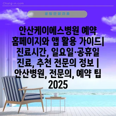 안산케이에스병원 예약 홈페이지와 앱 활용 설명서| 진료시간, 일요일·공휴일 진료, 추천 전연락 정보 | 안산병원, 전연락, 예약 팁 2025 에 대해 자주 묻는 질문 TOP 5