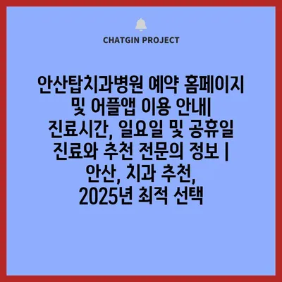 안산탑치과병원 예약 홈페이지 및 어플앱 이용 공지| 진료시간, 일요일 및 공휴일 진료와 추천 전연락 정보 | 안산, 치과 추천, 2025년 최적 선택 에 대해 자주 묻는 질문 TOP 5