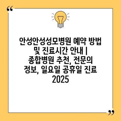 안성안성성모병원 예약 방법 및 진료시간 안내 | 종합병원 추천, 전문의 정보, 일요일 공휴일 진료 2025