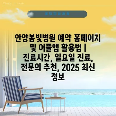 안양봄빛병원 예약 홈페이지 및 어플앱 활용법 | 진료시간, 일요일 진료, 전문의 추천, 2025 최신 정보