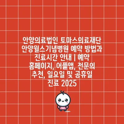 안양의료법인 토마스의료재단 안양윌스기념병원 예약 방법과 진료시간 공지 | 예약 홈페이지, 어플앱, 전연락 추천, 일요일 및 공휴일 진료 2025 에 대해 자주 묻는 질문 TOP 5