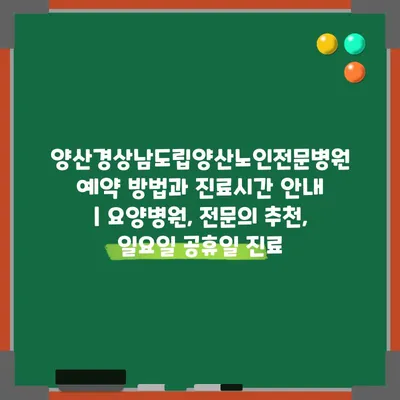 ✅ 양산노인전문병원 예약 방법과 진료시간을 자세히 알아보세요.