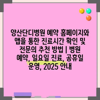 양산단디병원 예약 홈페이지와 앱을 통한 진료시간 확인 및 전연락 추천 방법 | 병원 예약, 일요일 진료, 공휴일 운영, 2025 공지 에 대해 자주 묻는 질문 TOP 5