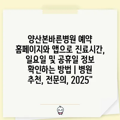 양산본바른병원 예약 홈페이지와 앱으로 진료시간, 일요일 및 공휴일 정보 확인하는 방법 | 병원 추천, 전연락, 2025″ 에 대해 자주 묻는 질문 TOP 5