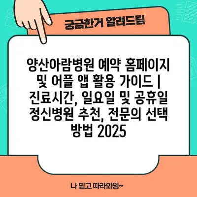 양산아람병원 예약 홈페이지 및 어플 앱 활용 설명서 | 진료시간, 일요일 및 공휴일 정신병원 추천, 전연락 선택 방법 2025 에 대해 자주 묻는 질문 TOP 5