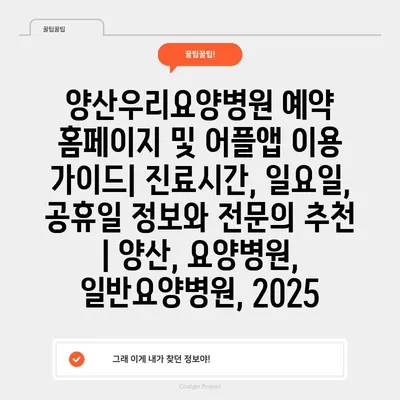 ✅ 양산우리요양병원의 예약 방법을 자세히 알아보세요.