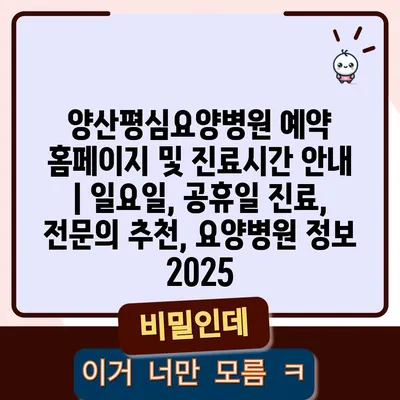 양산평심요양병원 예약 홈페이지 및 진료시간 공지 | 일요일, 공휴일 진료, 전연락 추천, 요양병원 정보 2025