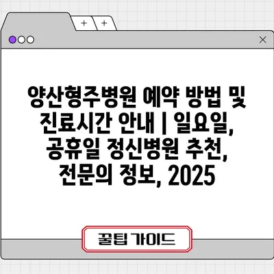 양산형주병원 예약 방법 및 진료시간 공지 | 일요일, 공휴일 정신병원 추천, 전연락 정보, 2025 에 대해 자주 묻는 질문 TOP 5