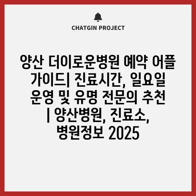 양산 더이로운병원 예약 어플 설명서| 진료시간, 일요일 운영 및 유명 전연락 추천 | 양산병원, 진료소, 병원정보 2025 에 대해 자주 묻는 질문 TOP 5