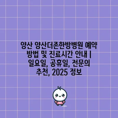 양산 양산더존한방병원 예약 방법 및 진료시간 안내 | 일요일, 공휴일, 전문의 추천, 2025 정보