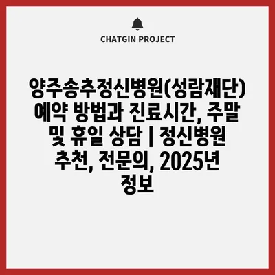 ✅ 양주송추정신병원의 예약 방법과 진료 시간을 자세히 알아보세요.