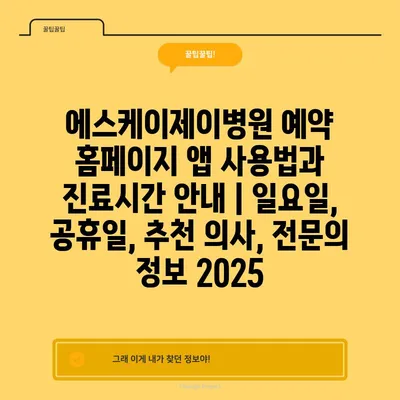에스케이제이병원 예약 홈페이지 앱 사용법과 진료시간 공지 | 일요일, 공휴일, 추천 의사, 전연락 정보 2025에 대해 알아보겠습니다.