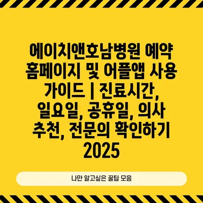에이치앤호남병원 예약 홈페이지 및 어플앱 사용 가이드 | 진료시간, 일요일, 공휴일, 의사 추천, 전문의 확인하기 2025
