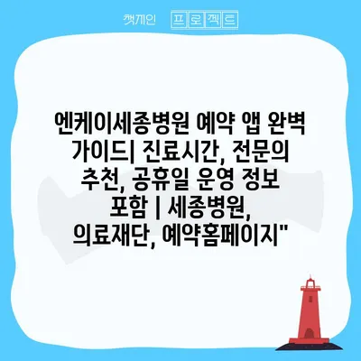 엔케이세종병원 예약 앱 완벽 설명서| 진료시간, 전연락 추천, 공휴일 운영 정보 포함 | 세종병원, 의료재단, 예약홈페이지에 대해 자주 묻는 질문 TOP 5