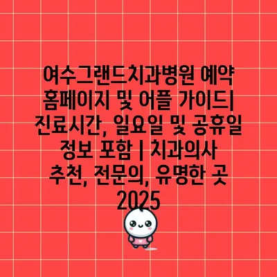 여수그랜드치과병원 예약 홈페이지 및 어플 설명서| 진료시간, 일요일 및 공휴일 정보 포함 | 치과의사 추천, 전연락, 유명한 곳 2025