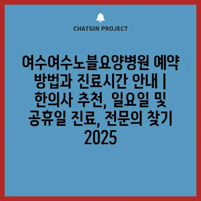 여수여수노블요양병원 예약 방법진료시간 공지 | 한의사 추천, 일요일 및 공휴일 진료, 전연락 찾기 2025