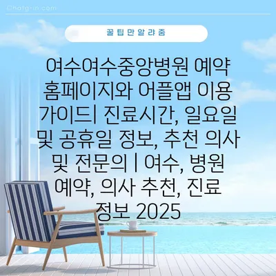 여수여수중앙병원 예약 홈페이지와 어플앱 이용 가이드| 진료시간, 일요일 및 공휴일 정보, 추천 의사 및 전문의 | 여수, 병원 예약, 의사 추천, 진료 정보 2025