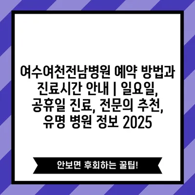 여수여천전남병원 예약 방법과 진료시간 공지 | 일요일, 공휴일 진료, 전연락 추천, 유명 병원 정보 2025
