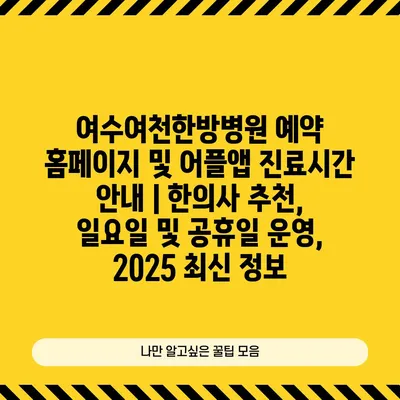 여수여천한방병원 예약 홈페이지 및 어플앱 진료시간 공지 | 한의사 추천, 일요일 및 공휴일 운영, 2025 최신 정보 에 대해 자주 묻는 질문 TOP 5