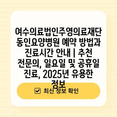 여수의료법인주영의료재단 동인요양병원 예약 방법과 진료시간 안내 | 추천 전문의, 일요일 및 공휴일 진료, 2025년 유용한 정보