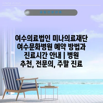 여수의료법인 미나의료재단 여수문화병원 예약 방법과 진료시간 안내 | 병원 추천, 전문의, 주말 진료