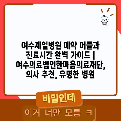 ✅ 여수제일병원의 진료시간과 예약 방법을 한눈에 알아보세요.