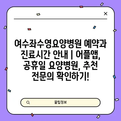 ✅ 여수좌수영요양병원의 진료시간과 예약 방법을 알아보세요.