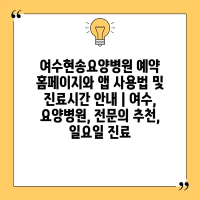 여수현송요양병원 예약 홈페이지와 앱 사용법 및 진료시간 공지 | 여수, 요양병원, 전연락 추천, 일요일 진료 에 대해 자주 묻는 질문 TOP 5