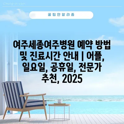 여주세종여주병원 예약 방법 및 진료시간 공지 | 어플, 일요일, 공휴일, 전문가 추천, 2025