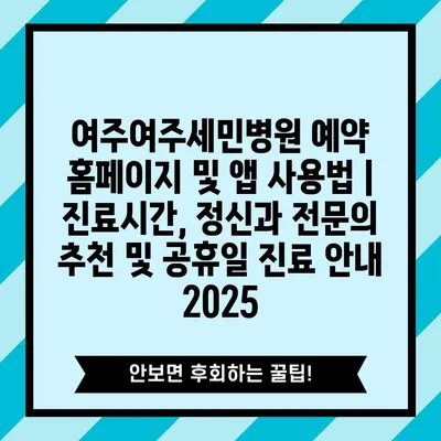 여주여주세민병원 예약 홈페이지 및 앱 사용법 | 진료시간, 정신과 전연락 추천 및 공휴일 진료 공지 2025