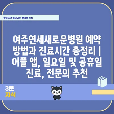 ✅ 여주연세새로운병원 예약 방법과 진료시간을 자세히 알아보세요.