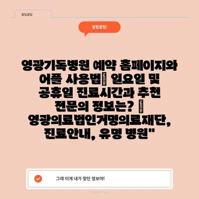 영광기독병원 예약 홈페이지와 어플 사용법| 일요일 및 공휴일 진료시간과 추천 전연락 정보는?