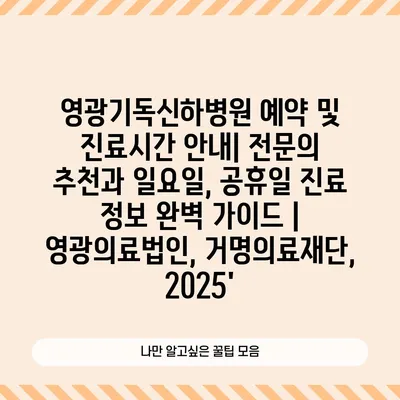 영광기독신하병원 예약 및 진료시간 안내| 전문의 추천과 일요일, 공휴일 진료 정보 완벽 가이드 | 영광의료법인, 거명의료재단, 2025′