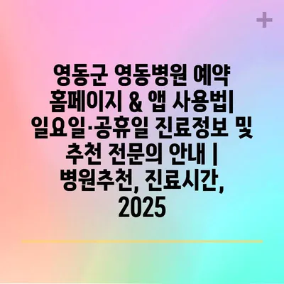 영동군 영동병원 예약 홈페이지 & 앱 사용법| 일요일·공휴일 진료정보 및 추천 전문의 안내 | 병원추천, 진료시간, 2025