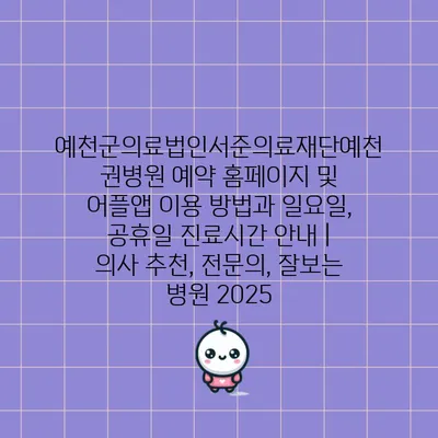 예천군의료법인서준의료재단예천권병원 예약 홈페이지 및 어플앱 이용 방법과 일요일, 공휴일 진료시간 공지 | 의사 추천, 전연락, 잘보는 병원 2025 에 대해 자주 묻는 질문 TOP 5